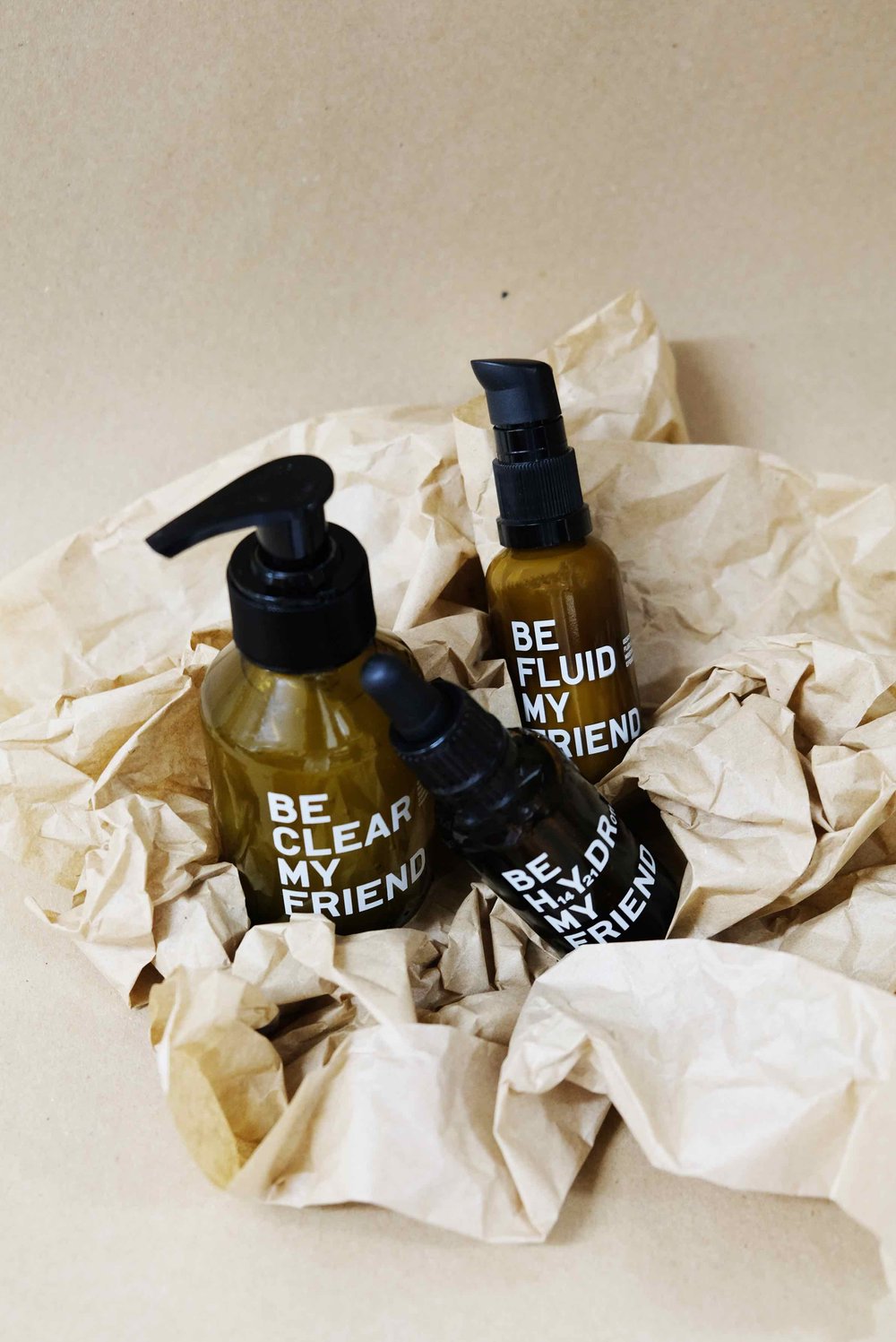 BE HYDRO is our hyaluronic acid. It contains a highly concentrated blend of high and low molecular weight hyaluronic acid and cucumber extract. The oil-free serum is suitable for all skin types and provides a dynamic appearance.